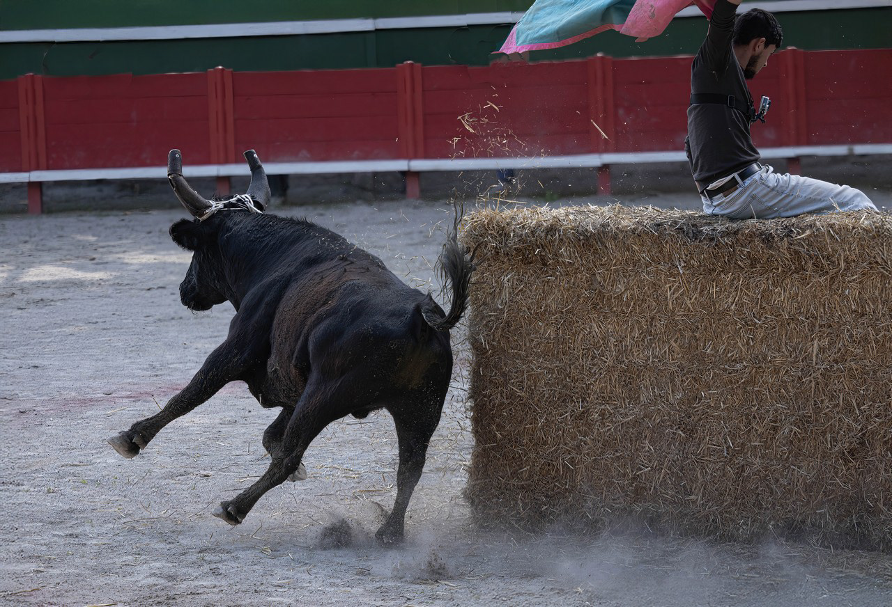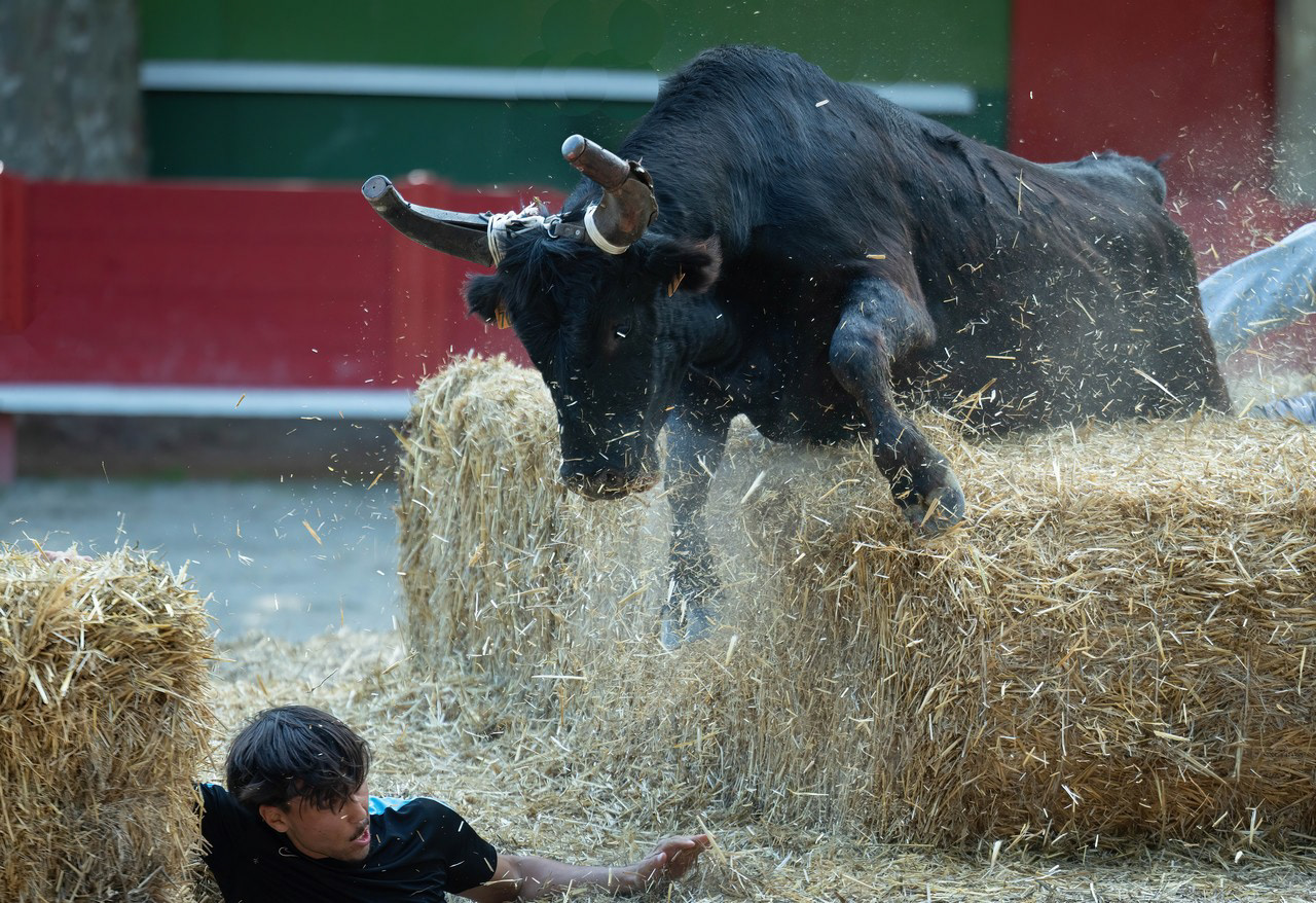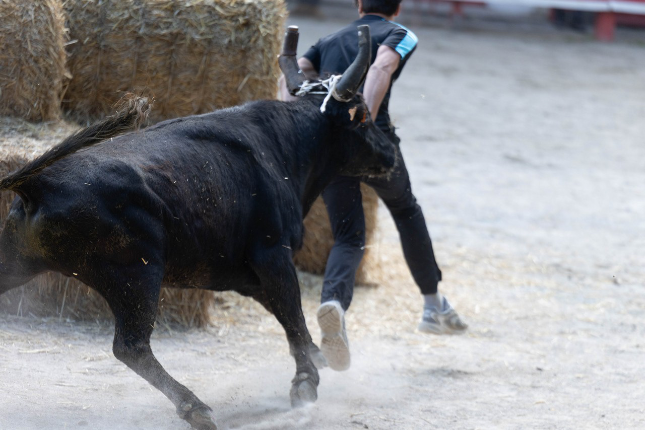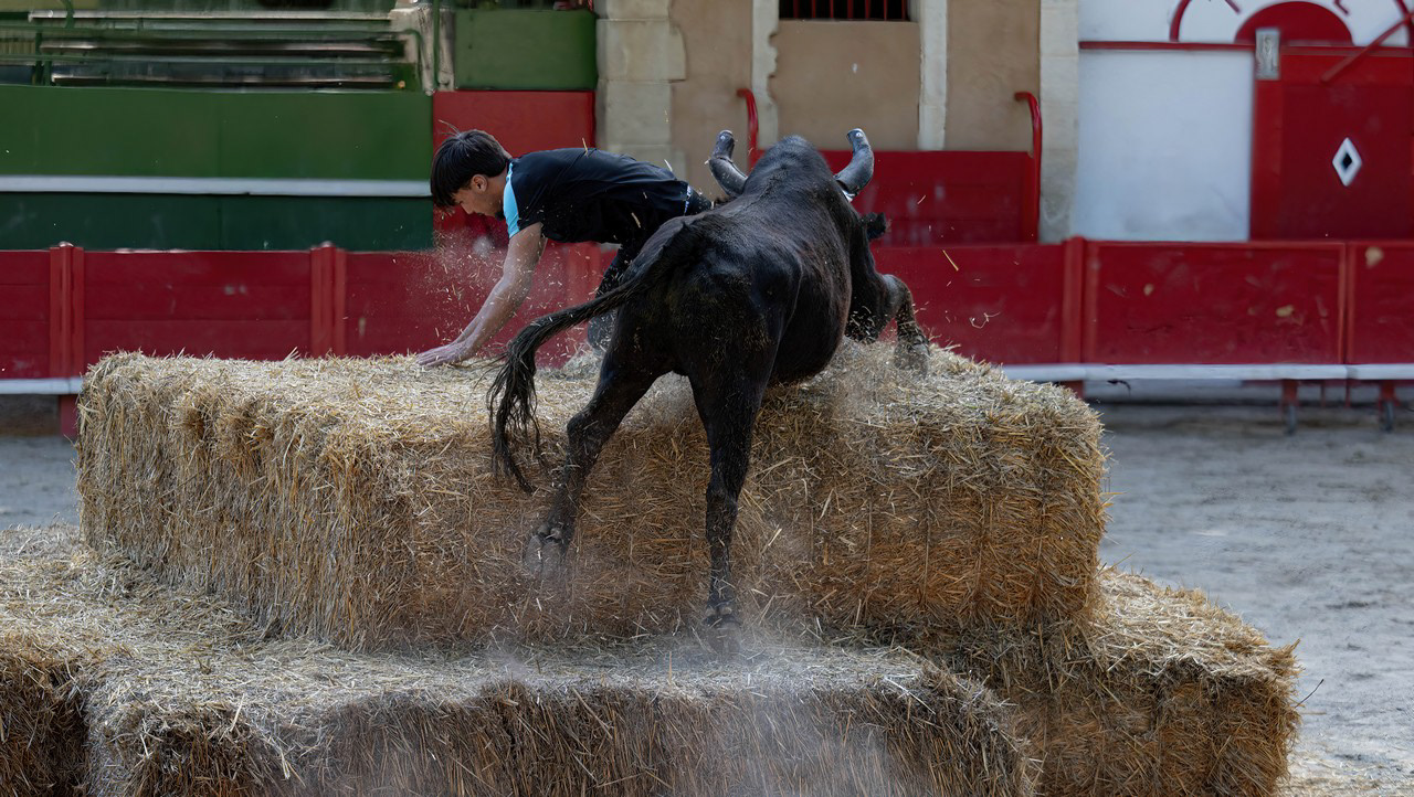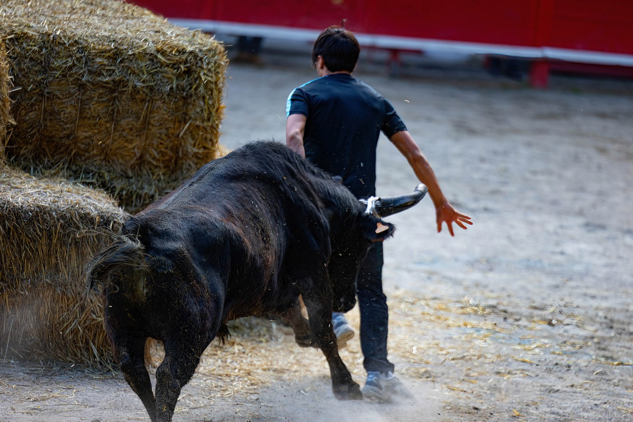 In south of France, many villages have their own arena, where these traditional games take place. No harm, no injury to the bulls here, just run fast enough to avoid the bulls horn !