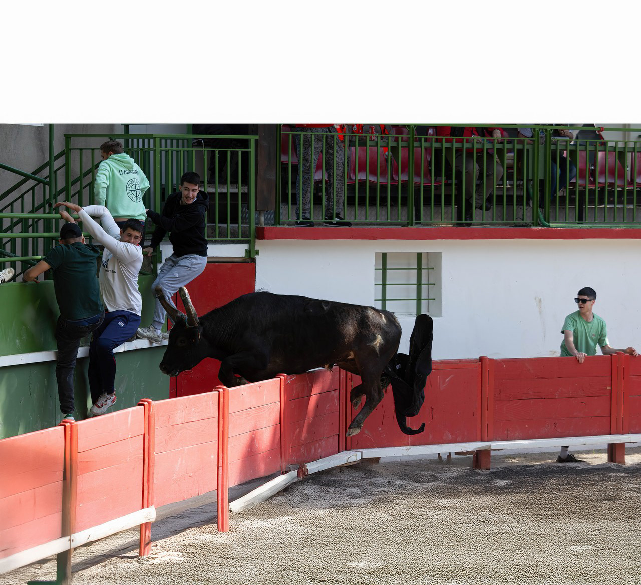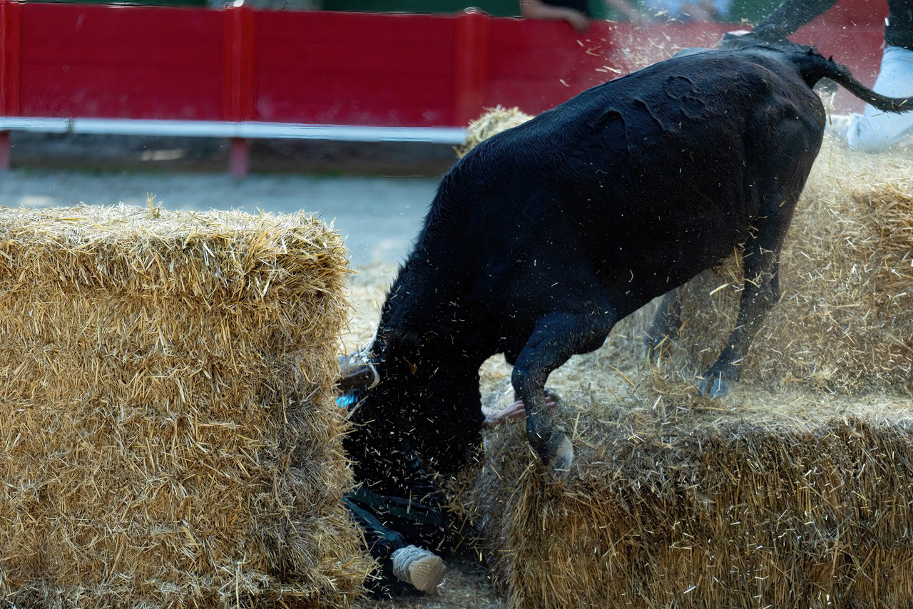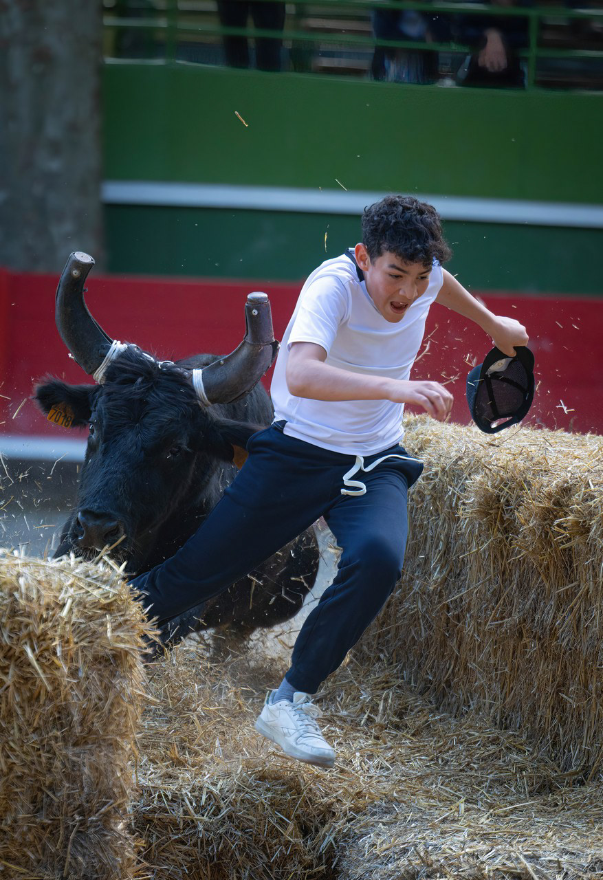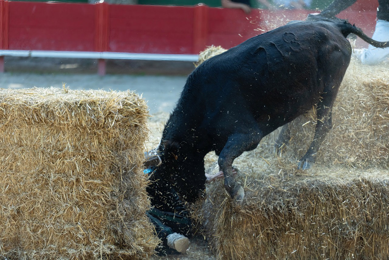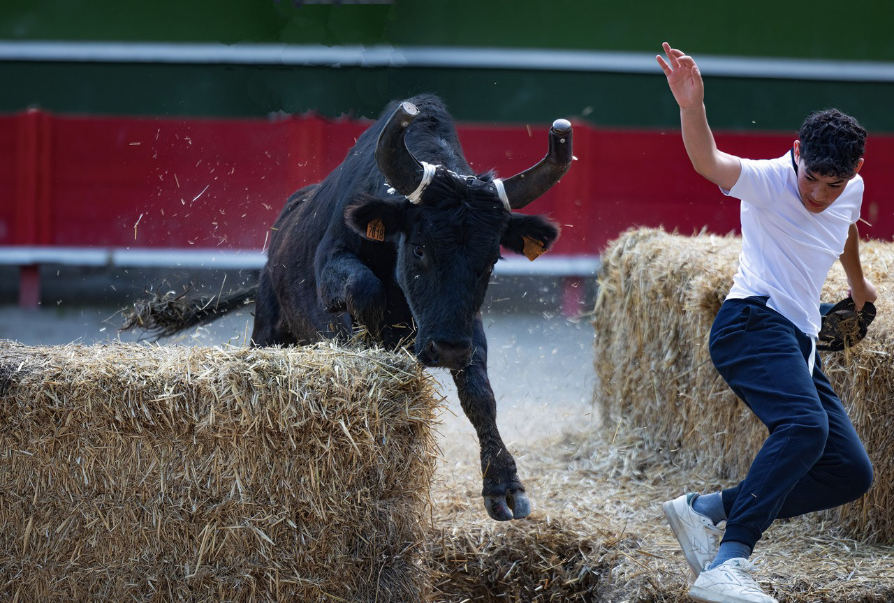 In south of France, many villages have their own arena, where these traditional games take place. No harm, no injury to the bulls here, just run fast enough to avoid the bulls horn !
